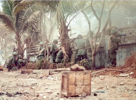 North Vietnamese troops had breached the walls of the US Embassy in Saigon, inflicting a stunning, if futile, blow in the opening salvo of January’s Tet Offensive against the major cities of the South.