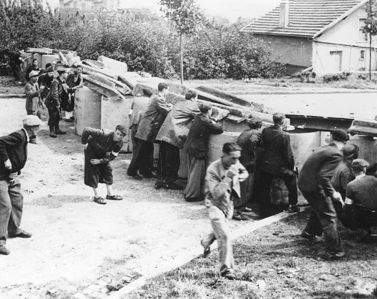 “In those historic four days there was fighting in the Rue de Rivoli, where the Germans used small field guns against the rifles and pistols of the French.